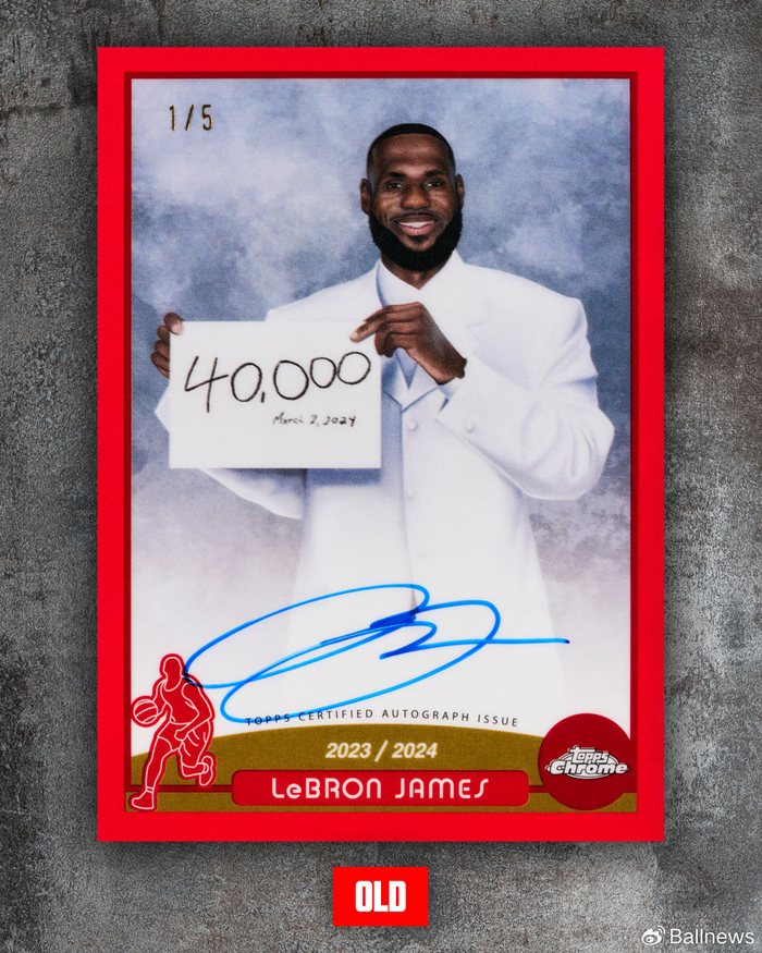 现年41岁的詹姆斯,被公认为NBA历史上最伟大的球员之一,也是全球最具影响力的运动员之一。因此,他的签名卡片和相关收藏品始终拥有极高的市场需求。